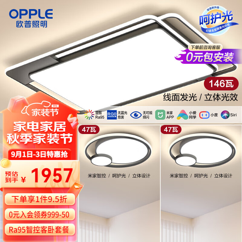 欧普(OPPLE)吸顶灯客厅大灯护眼智能LED照明灯具灯饰简约现代大气套餐3呵护光价格:2060.00元!