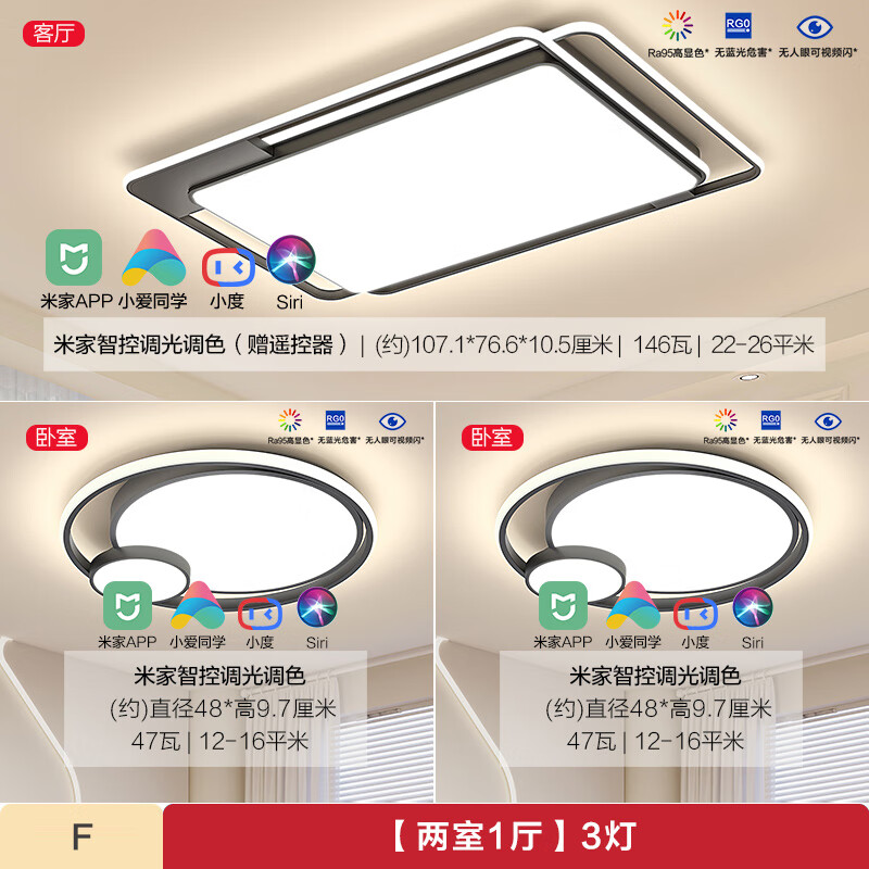 2、外观款式:简约大方,款式新颖灯光效果:点亮效果非常棒,很有高级感操作控制:可遥控,可开关控制,还能小爱同学,完美,联网的小爱同学控制还没试,家里还没通宽带,后续通了再看效果吧材质工艺:是大厂做工,妥妥的没毛病其他特色:没用套装里的餐厅吊灯,自己买了汉宫的餐吊,搭配效果非常棒还有,安装师傅很细心,有要求及时沟通就可满足,加鸡腿加鸡腿!!!