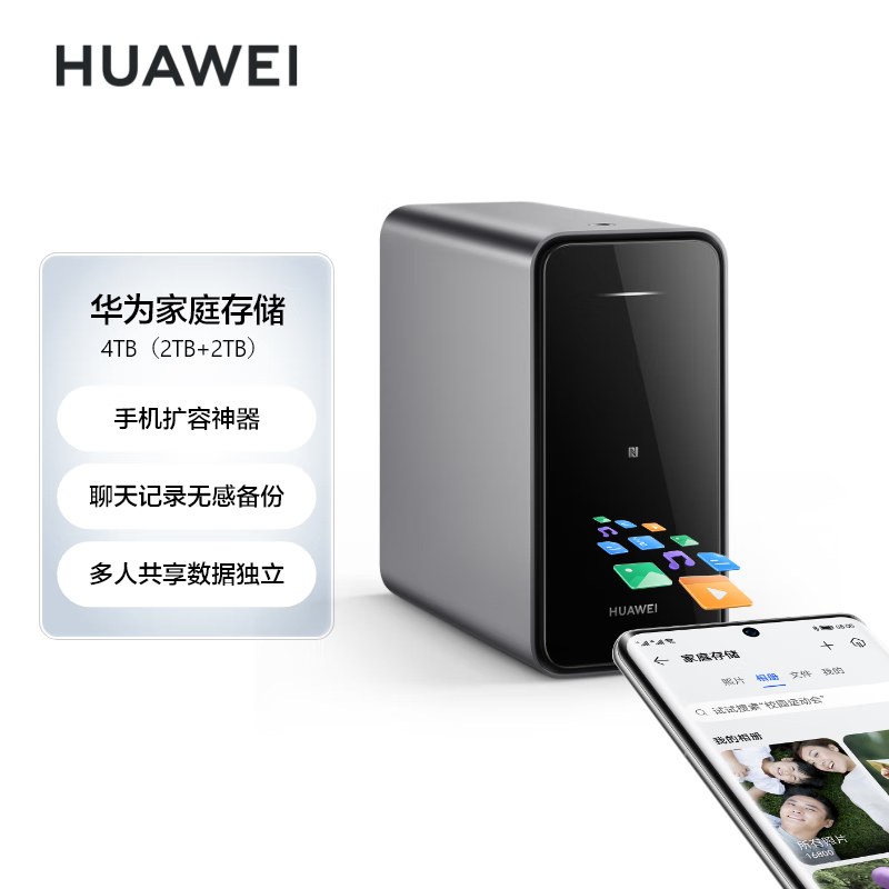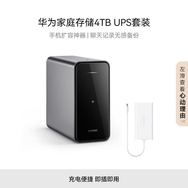 华为家庭存储4TB+UPS套装 手机一碰扩容 双盘位nas网络存储器相册备份家用硬盘网盘私有云服务器价格:2819.00元!