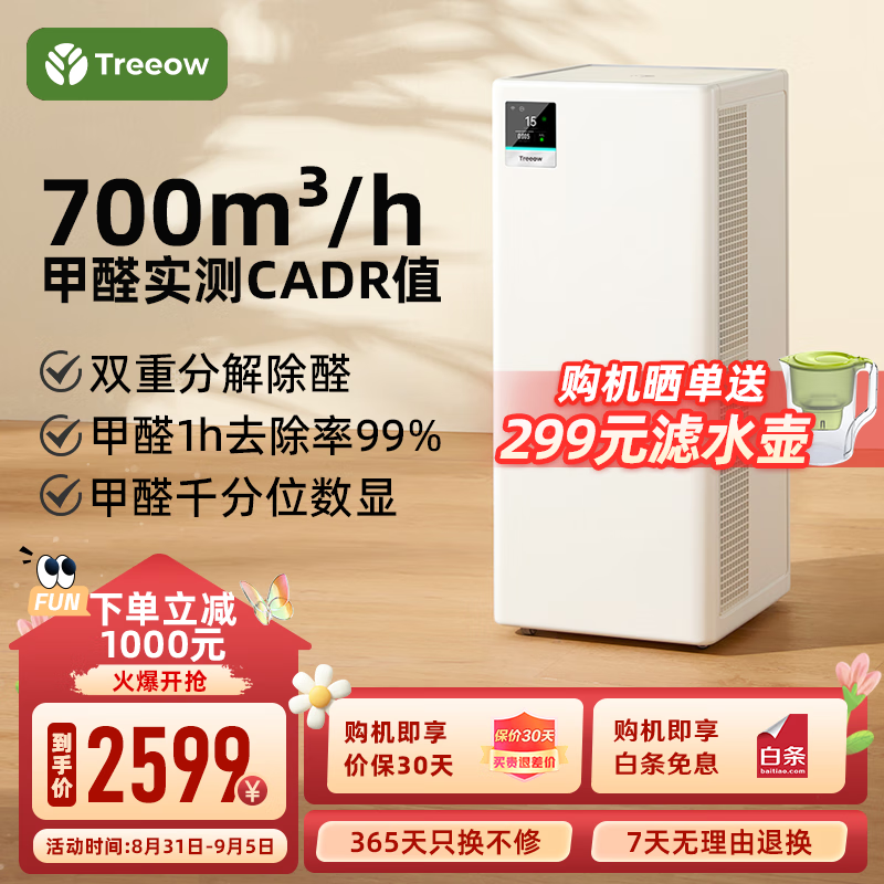 树新风空气净化器 除甲醛异味雾霾除菌除过敏认证 家用大空间 净化 T2价格:3599.00元!