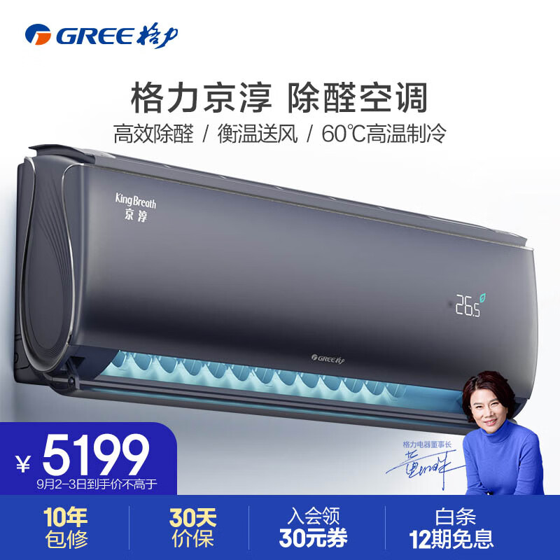 格力(GREE)大1匹 京淳 高效除甲醛 空调空气净化器一体机 壁挂式卧室空调挂机 格力空调KFR-26GW/NhCf1BGj价格:5199.00元!