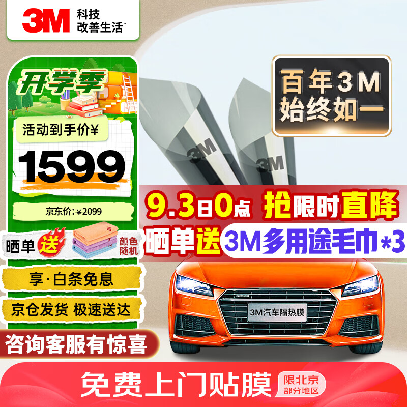 3M 汽车贴膜 朗清系列 浅色SUV全车汽车玻璃车膜太阳膜隔热膜车窗膜 包施工 国际品牌价格:2099.00元!