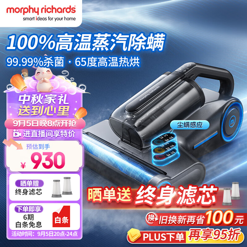 摩飞电器(Morphyrichards)蒸汽除螨仪手持超声波高温蒸汽100%除螨吸尘器床上高温熨烫机大吸力去螨虫机MR3102母婴宠物适用价格:1090.00元!
