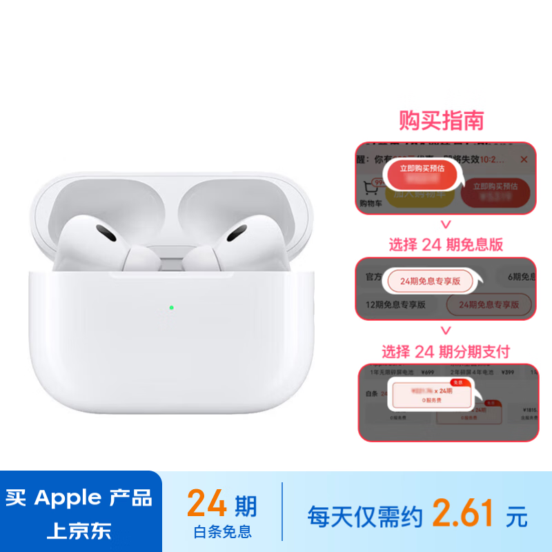Apple/苹果【24期免息】AirPods Pro(第二代) 搭配MagSafe充电盒 (USB-C)蓝牙耳机适用iPhone/iPad/Mac价格:1879.00元!