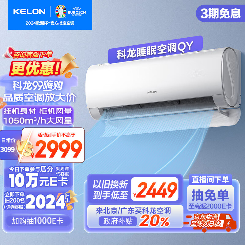 科龙(KELON)睡眠空调 大2匹 新一级能效 以旧换新 大风量急速冷暖 变频省电 卧室客厅空调挂机KFR-50GW/QY1-X1价格:2999.00元!