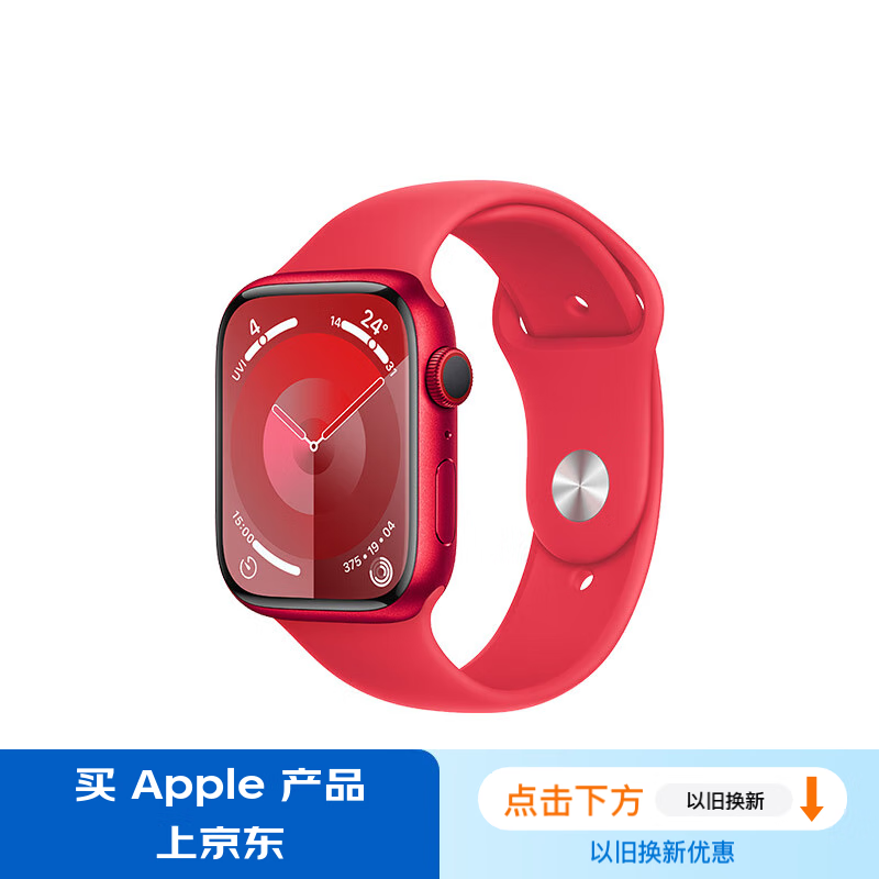 Apple/苹果 Watch Series 9 智能手表GPS+蜂窝款45毫米红色铝金属表壳红色运动型表带S/M MRYF3CH/A价格:3999.00元!
