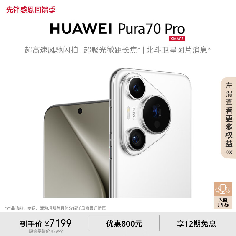 HUAWEI Pura 70 Pro 雪域白 12GB+1TB 超高速风驰闪拍 超聚光微距长焦 华为P70智能手机价格:7199.00元!