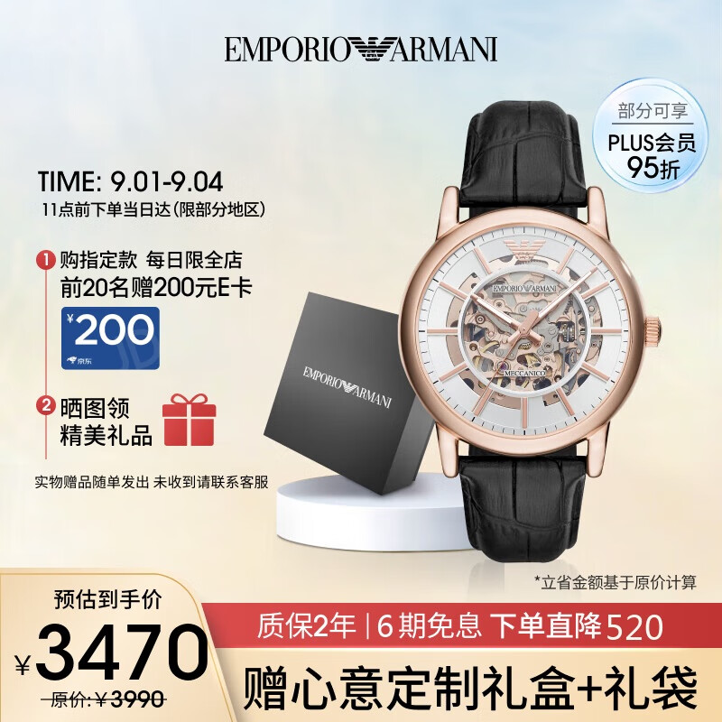 安普里奥·阿玛尼(Emporio Armani)手表男士 经典欧美表皮带镂空机械表男生日礼物送男友AR60007价格:3830.00元!