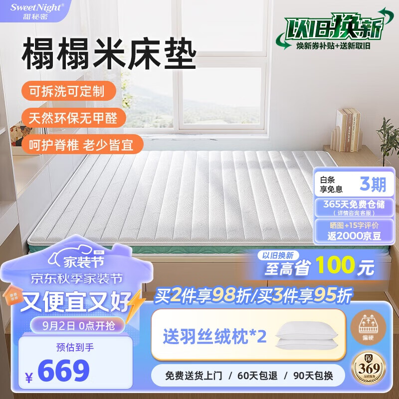Sweetnight榻榻米床垫天然椰棕床垫6cm床垫子 可定制拆洗 甜秘密丹左1.2x2米价格:669.00元!