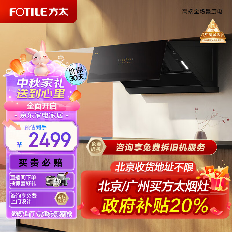 方太家用侧吸抽油烟机 23m3/min大吸力 直流变频 智能巡航 小尺寸 01-JCD10TA价格:2499.00元!