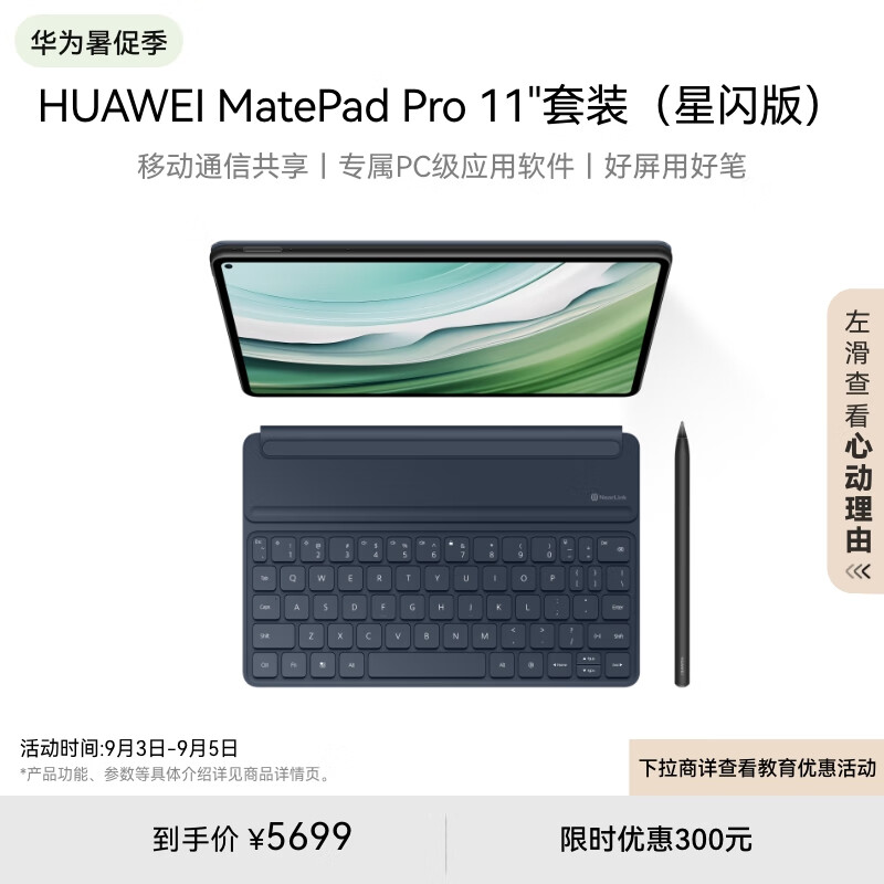 HUAWEI MatePad Pro 11英寸2024华为平板电脑办公学习星闪12+512GB WIFI曜金黑 含星闪键盘+星闪笔价格:5699.00元!