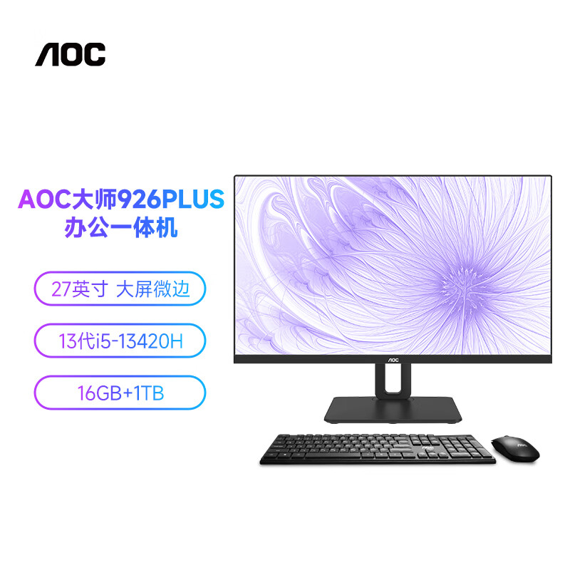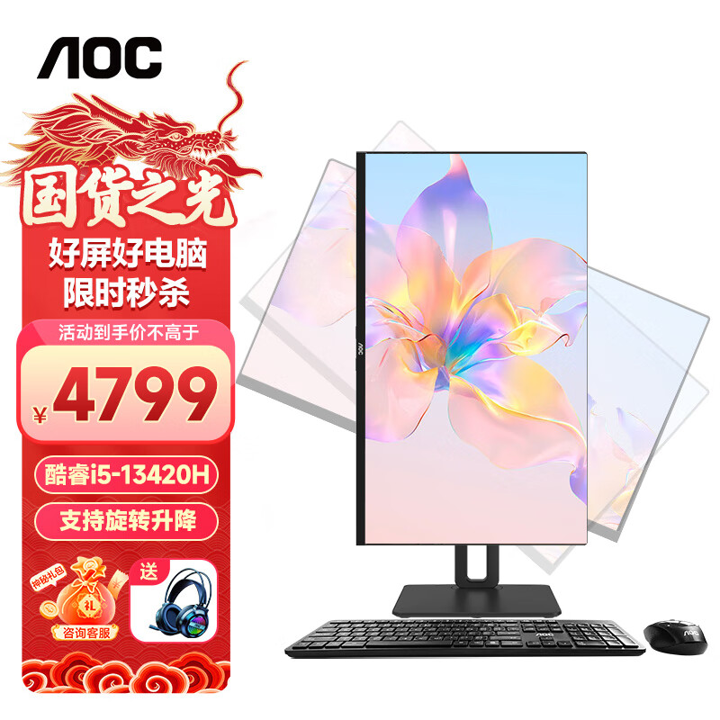 AOC大师926PLUS 27英寸2K办公随心屏一体机台式电脑(13代i5-13420H 16G 1T旋转升降 双频WIFI)灰价格:4799.00元!
