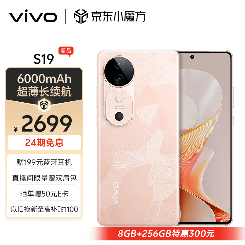 vivo S19 12GB+256GB 桃花扇 6000mAh超薄长续航 影棚级柔光环 百万跑分第三代骁龙7 5G 拍照 手机价格:2699.00元!