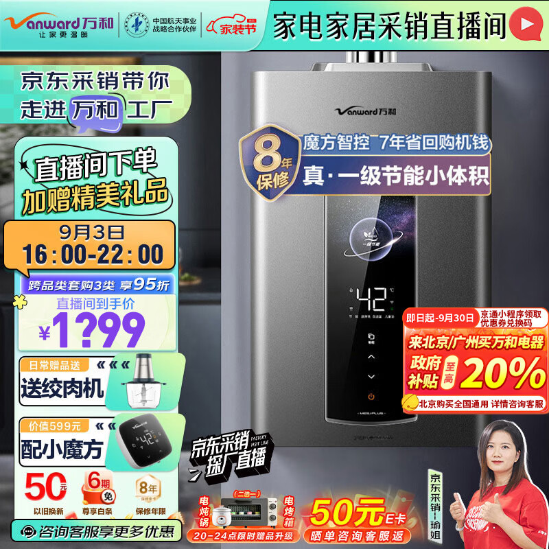 万和(Vanward)燃气热水器16升天然气小体积【真·一级节能】小魔方智控水伺服恒温JSQ30-ME5J16 PLUS 以旧换新价格:1549.00元!
