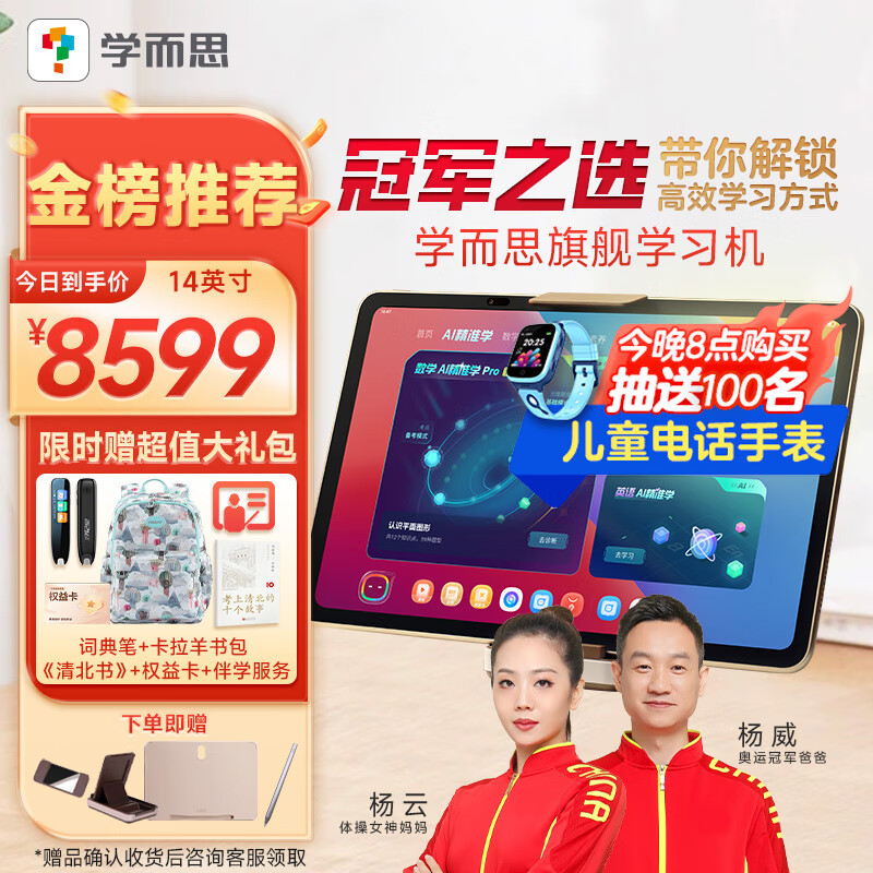 学而思二代旗舰学习机精准学Pro九章大模型中学小学学生学习平板护眼AI学习机 14英寸 (12+512G)价格:8599.00元!