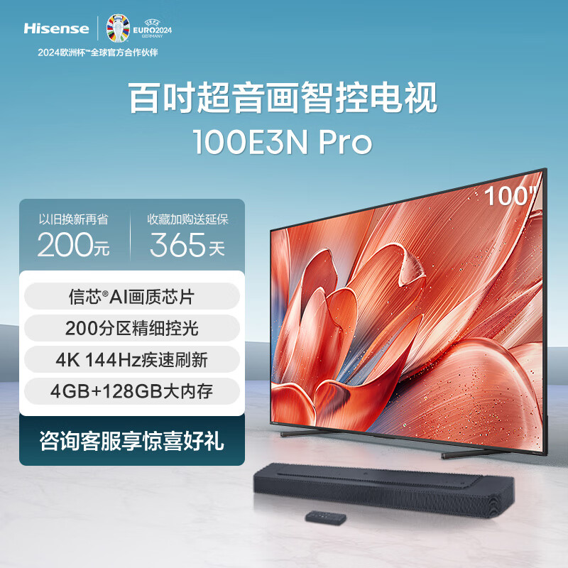 海信电视E3N Pro +BAR300沉浸追剧套装 100英寸 百级分区控光 信芯AI画质芯片 液晶智慧屏价格:14598.00元!
