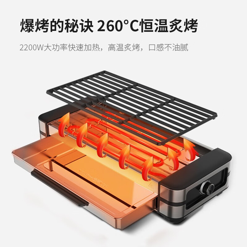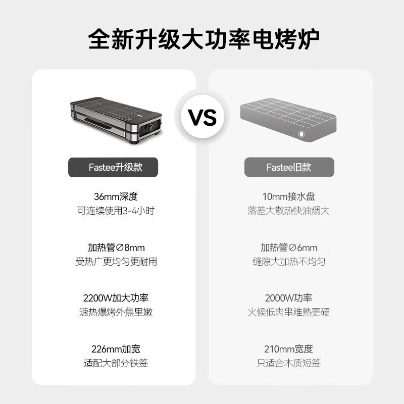 法诗缇(Fastee)电烤炉烤串炉家用电烧烤炉韩式无烟不粘牛扒烤肉生蚝 2200W功率 升级铸铁网 双烤网(铸铁烤网+烤网)价格:399.00元!