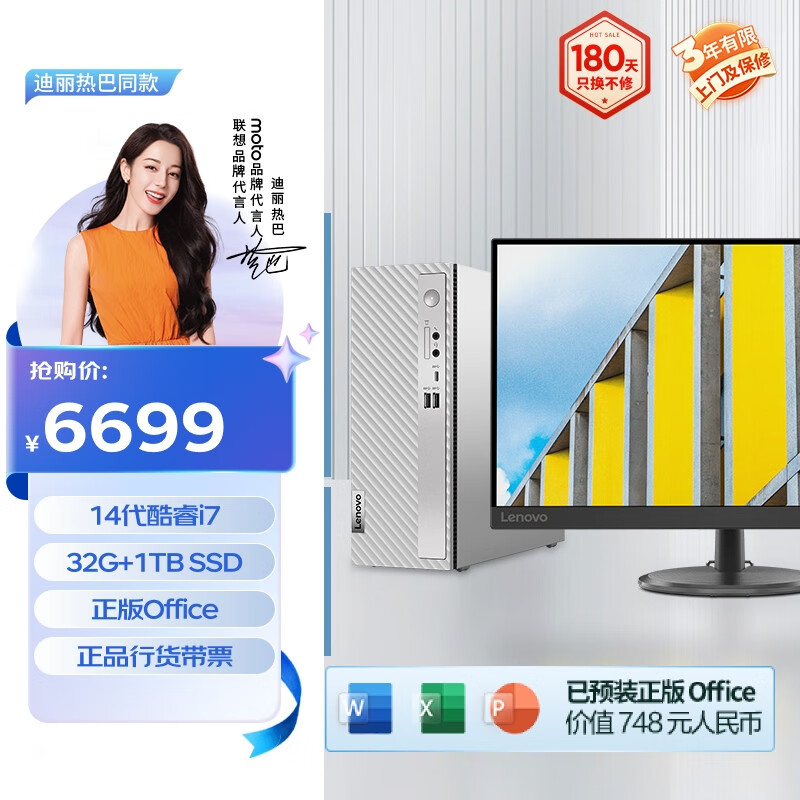 联想(Lenovo)天逸510S 2024商务台式机电脑主机(酷睿14代i7-14700 32G 1TB SSD win11)27英寸显示器价格:6699.00元!