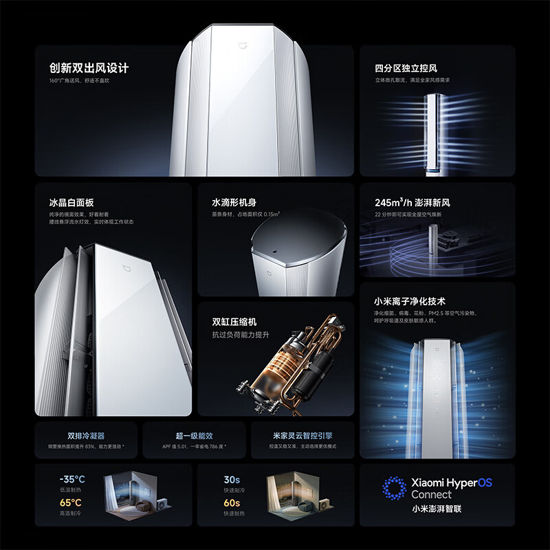 小米3匹 超一级能效 新风Pro双出风 冰晶白 245m3/h大新风量 新风空调 变频冷暖 空调柜机【2024新款】价格:8499.00元!