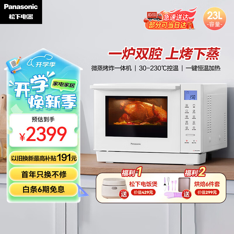 松下(Panasonic)微蒸烤炸一体机 23L家用台式变频微蒸烤 微波炉 烤箱 空气炸 蒸箱 万食炉 上烤下蒸 DS37价格:2299.00元!