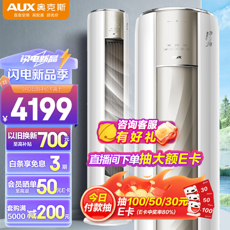 奥克斯(AUX)空调2匹柜机 新一级能效 客厅立式圆柱 变频冷暖节能 WiFi智控 KFR-51LW/BpR3AQJ1(B1)价格:4199.00元!