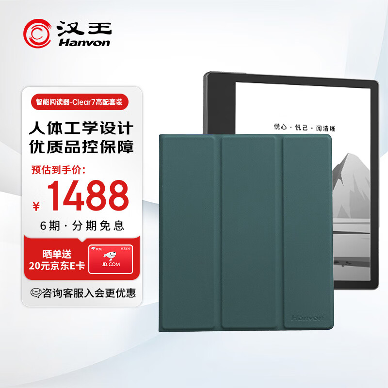 汉王(Hanvon) Clear 7英寸电子书阅读器 墨水屏电纸书看书学习便携阅读办公本4+64版贤春绿支架保护套.套装价格:1488.00元!