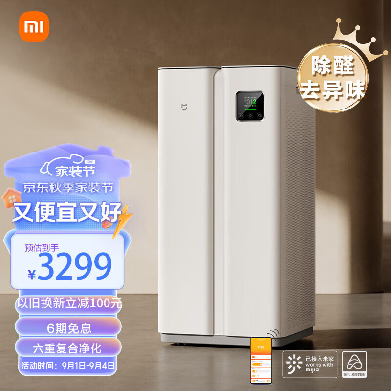 米家小米空气净化器 分解式除醛除菌雾霾异味家用净化机智能数显价格:3299.00元!