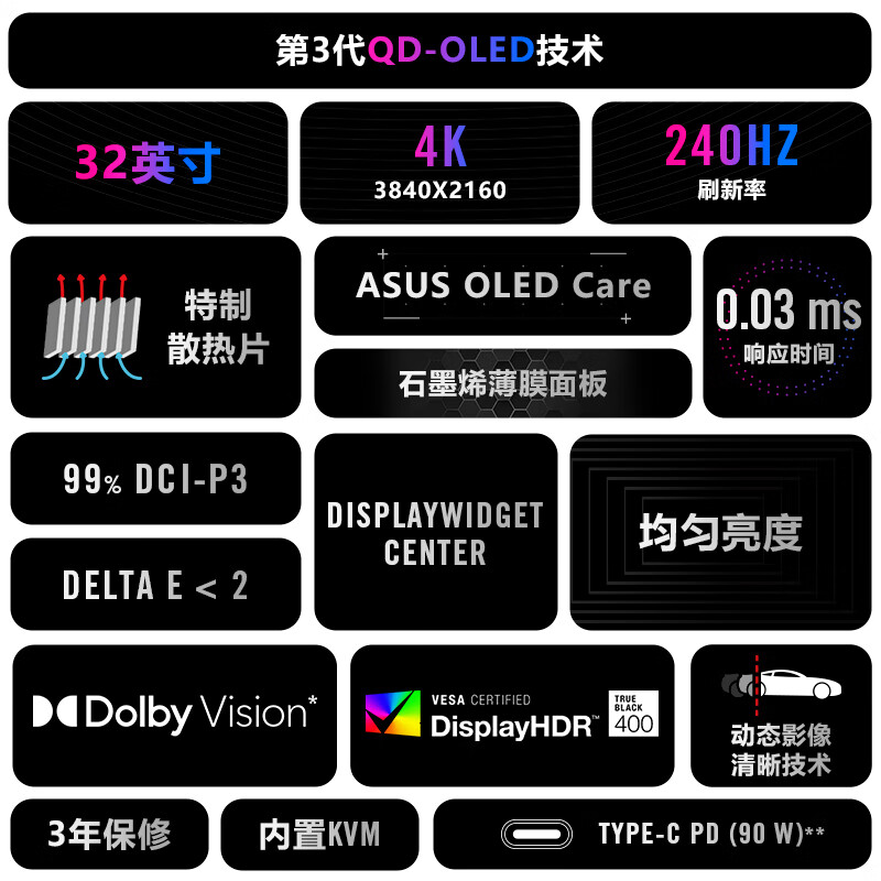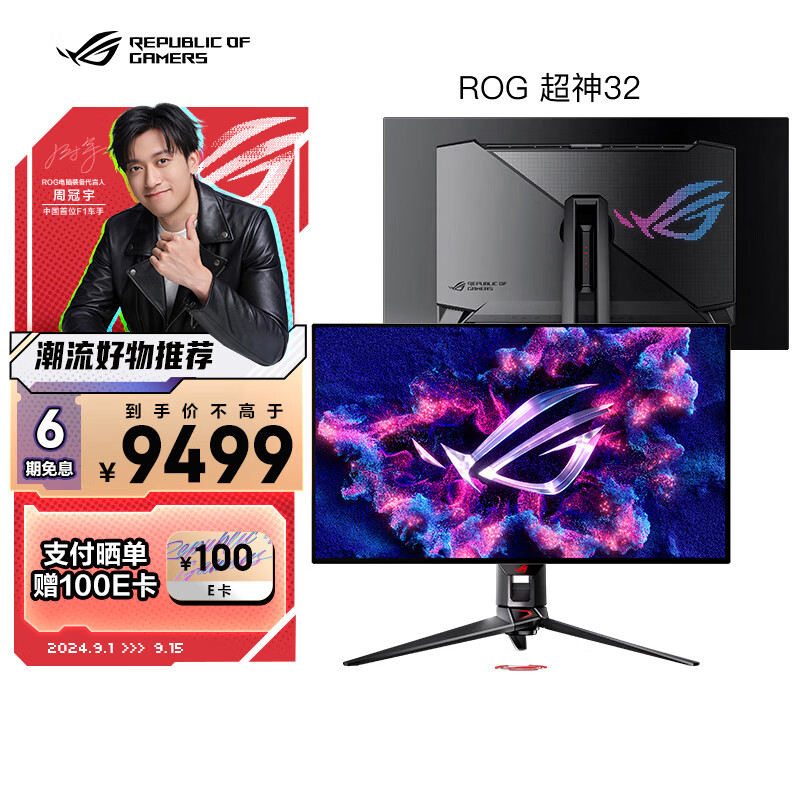 华硕ROG PG32UCDM超神 32英寸OLED显示器4K显示器240Hz显示器电竞G-sync 0.03msGTG响应 Type-C HDR400价格:9499.00元!