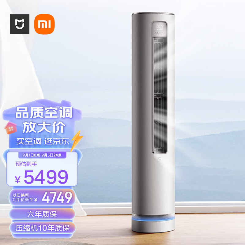 小米3匹 新一级能效 变频冷暖 自然风 智能自清洁 客厅圆柱空调立式柜机 米家 KFR-72LW/R1A1价格:5499.00元!
