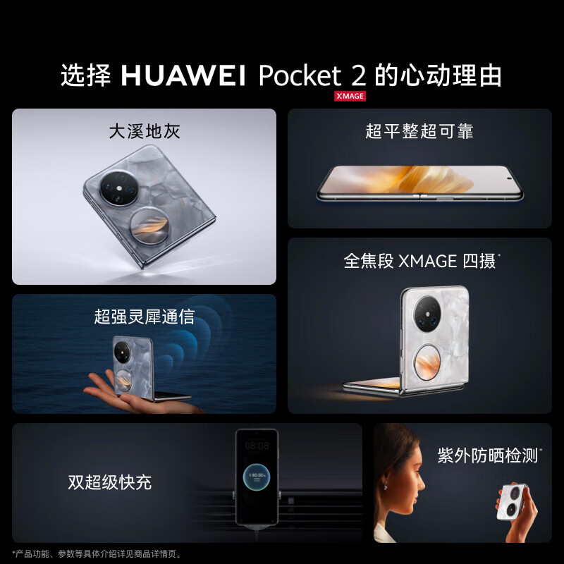 HUAWEIPocket 2 超平整超可靠 12GB 1TB 芋紫 华为折叠屏鸿蒙手机【赠服务】价格:8099.00元!