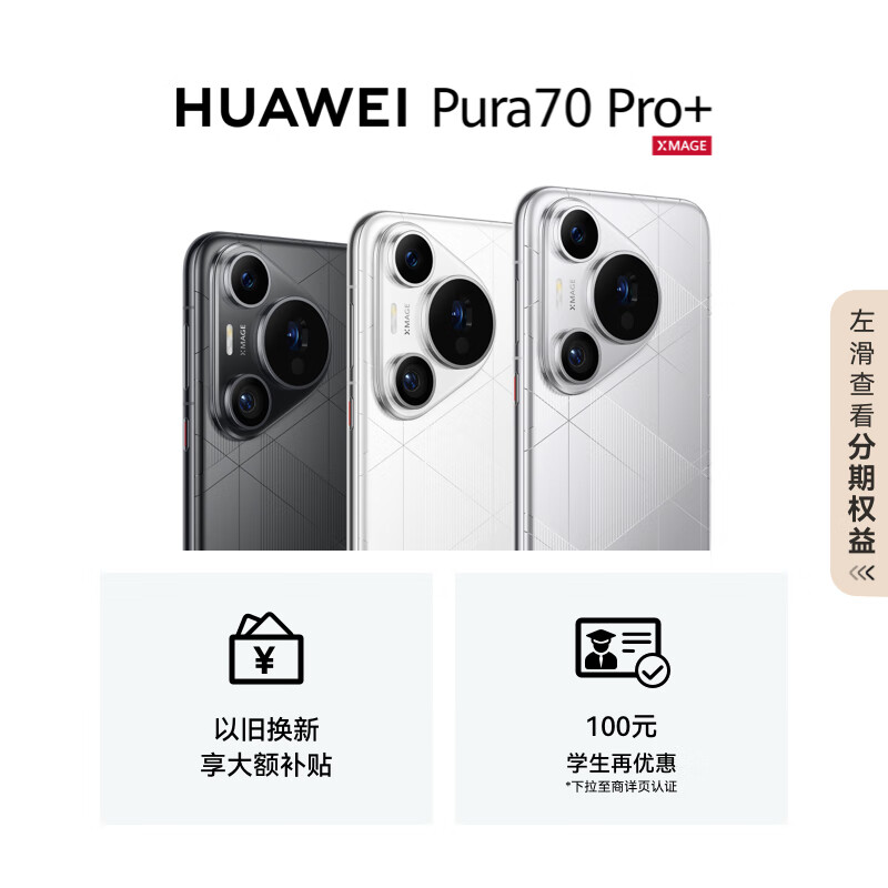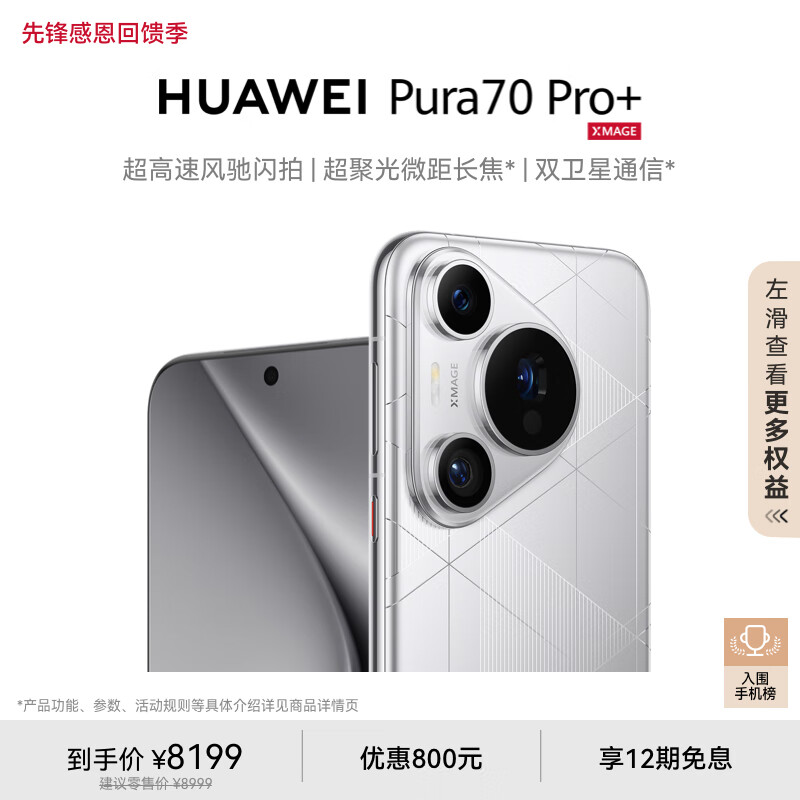 HUAWEI Pura 70 Pro+ 光织银 16GB+1TB 超高速风驰闪拍 超聚光微距长焦 双卫星通信 华为P70智能手机价格:8199.00元!