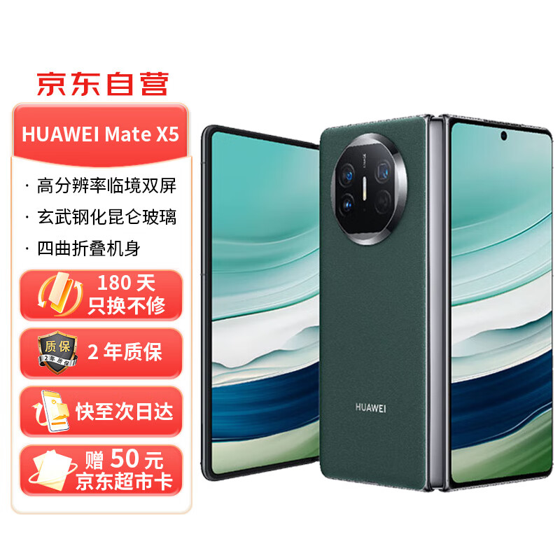 华为(HUAWEI)mate x5 折叠屏手机 青山黛 12GB+512GB价格:11899.00元!