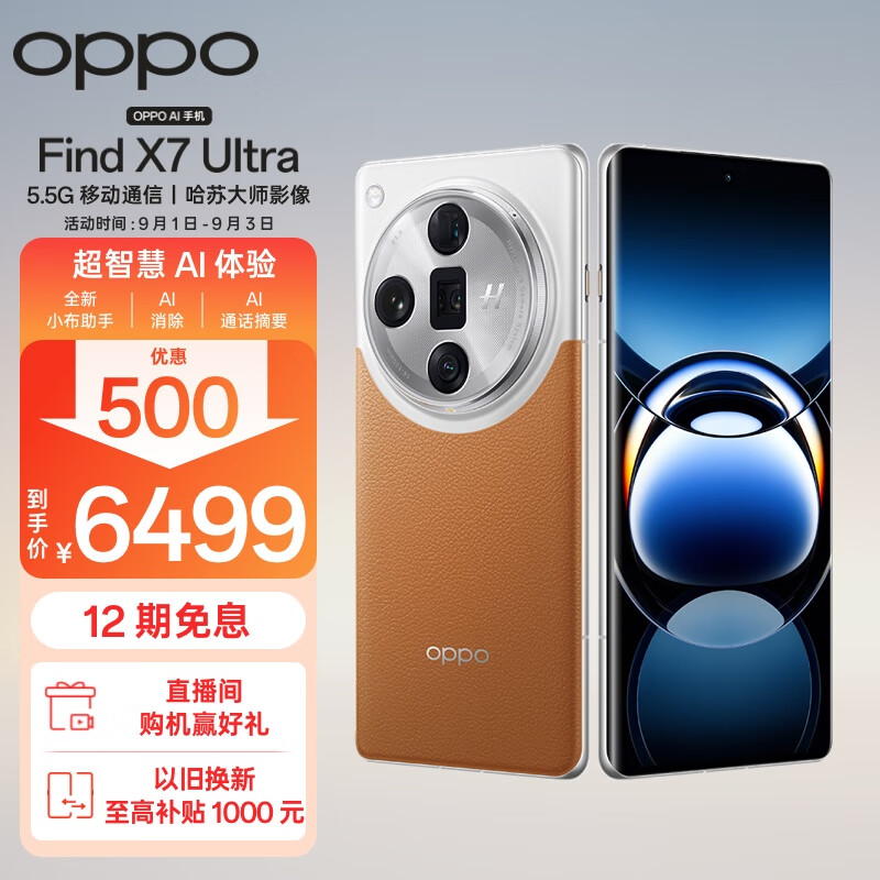 OPPO Find X7 Ultra 16GB+512GB 大漠银月 1英寸双潜望四主摄 哈苏影像 第三代骁龙8 5.5G 拍照 AI手机价格:6499.00元!