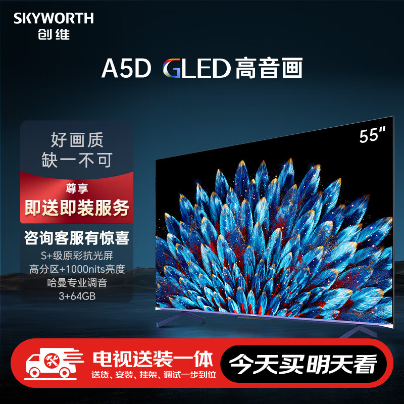 创维电视55A5D【送装一体版本】55英寸电视机3+64G哈曼调音1000nits智慧屏彩电液晶护眼平板游戏电视价格:2698.00元!