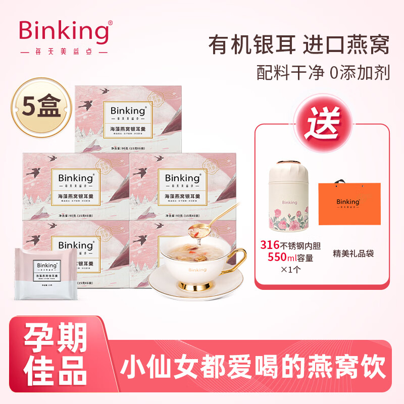Binking 燕窝海藻银耳羹 早餐代餐 健康锁鲜冻干冲泡即食燕窝饮 节日礼物【5盒装30包】价格:265.00元!
