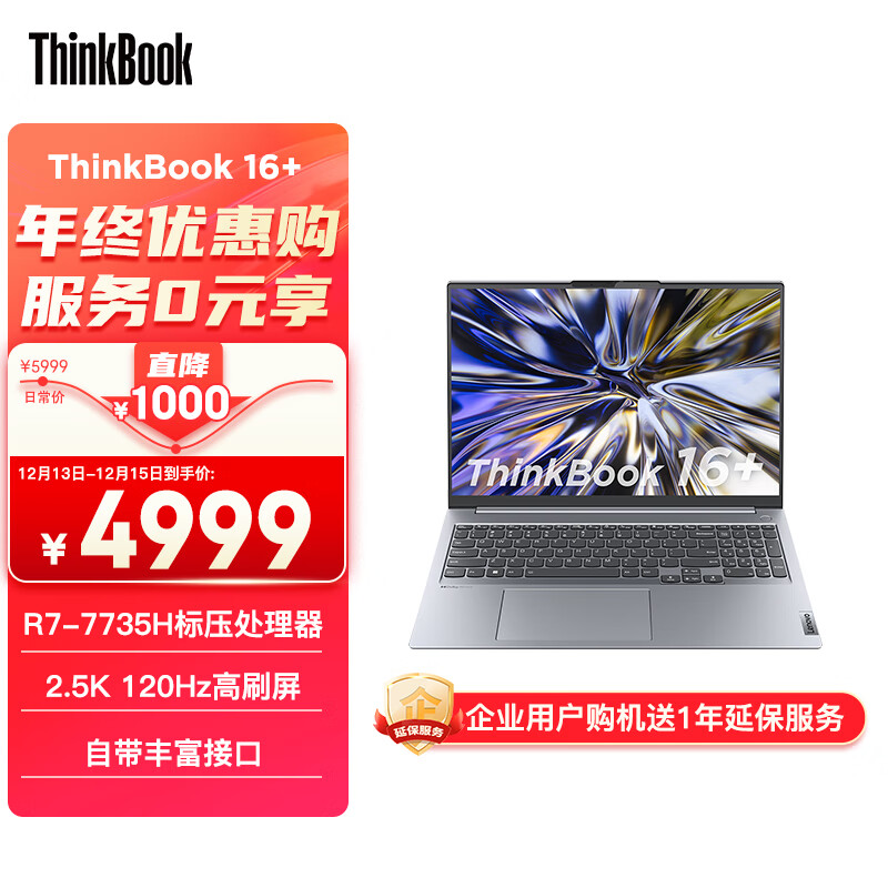 ThinkPad联想ThinkBook 16+ 2023 AMD锐龙标压笔记本电脑 16英寸标压轻薄办公本R7-7735H 16G 512G SSD 2.5K 120Hz价格:4999.00元!