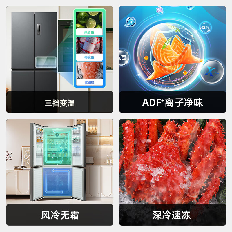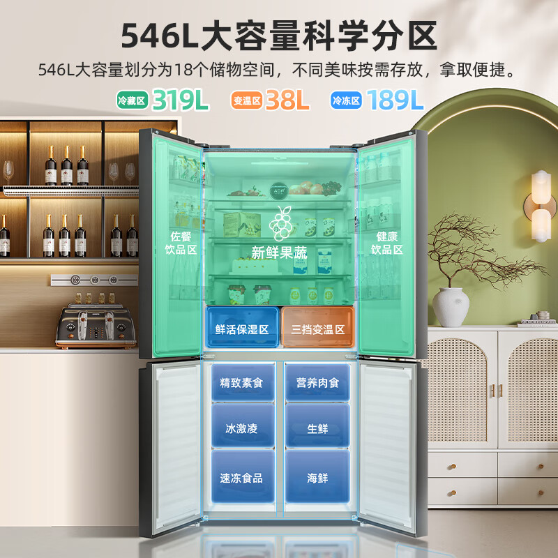 美菱(MeiLing)546升双变频一级能效节能十字双开对开四开门冰箱家用风冷无霜抗菌净味BCD-546WP9CX大容量价格:2699.00元!