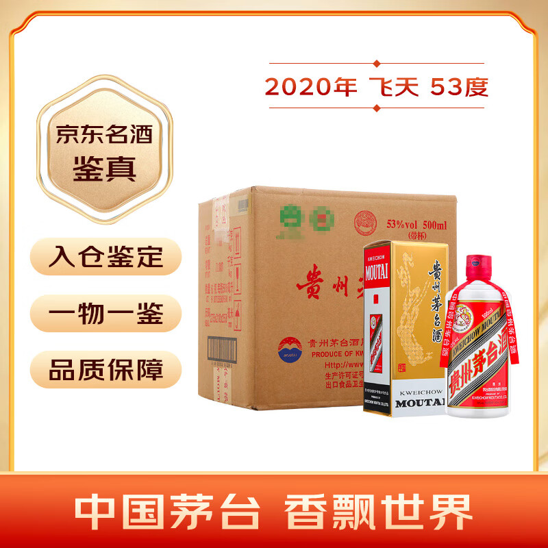 茅台(MOUTAI)2020年 飞天 酱香型白酒 53度 500ml*6 整箱装【名酒鉴真】价格:18834.00元!