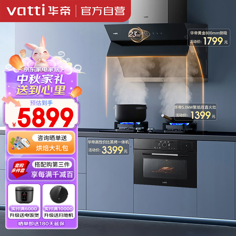 华帝(VATTI)小尺寸抽油烟机燃气灶具微蒸烤家用厨房三件套装侧吸式油烟机i11170+72B+23011(天然气)价格:5799.00元!