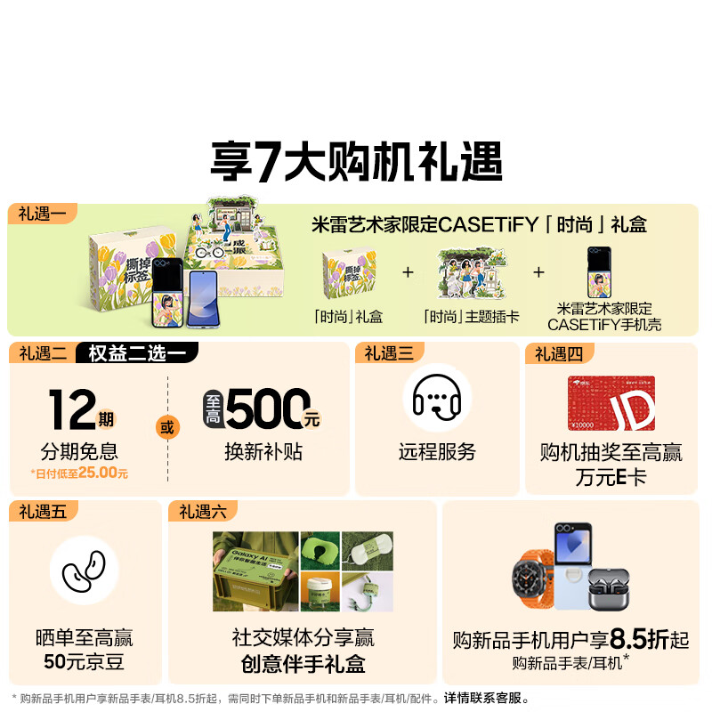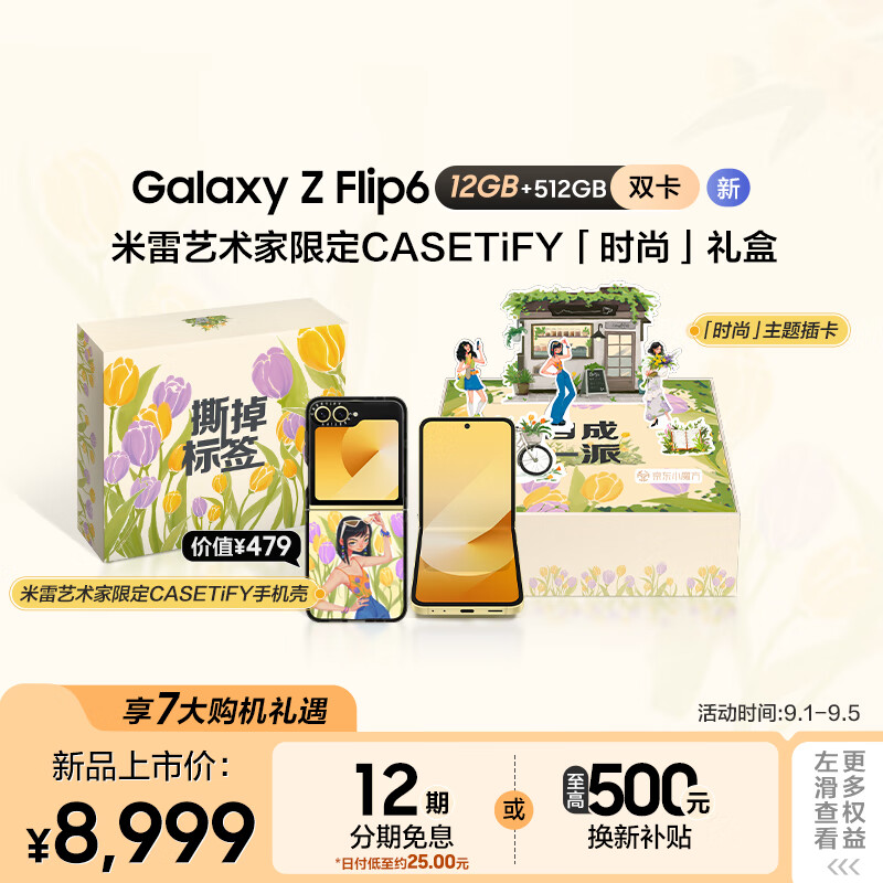 三星(SAMSUNG)Galaxy Z Flip6 AI手机 5000万像素 双卡 折叠屏手机 米雷艺术家限定「时尚」礼盒 12+512G 热爱黄价格:8999.00元!