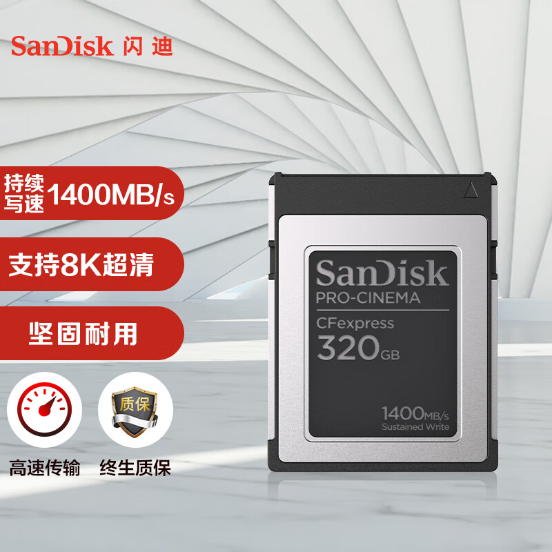闪迪(SanDisk)320GB CFexpress Type B内存卡 影院级8K视频 读速1700MB/s 持续写速1400MB/s 专业摄影存储卡价格:4999.00元!