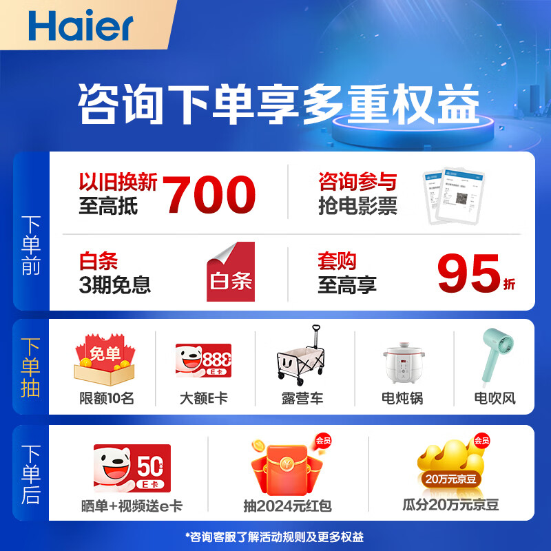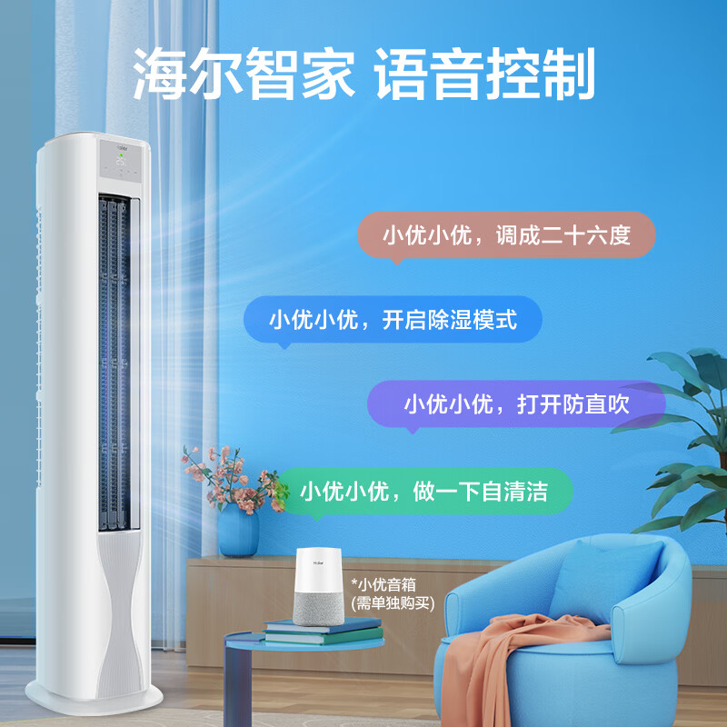 4、多家选择,还是认准老字号海尔,降温快速,可以手机操作,很方便,声音小,目前满意,2匹新一级能效变频自清洁家用客厅空调立式柜机