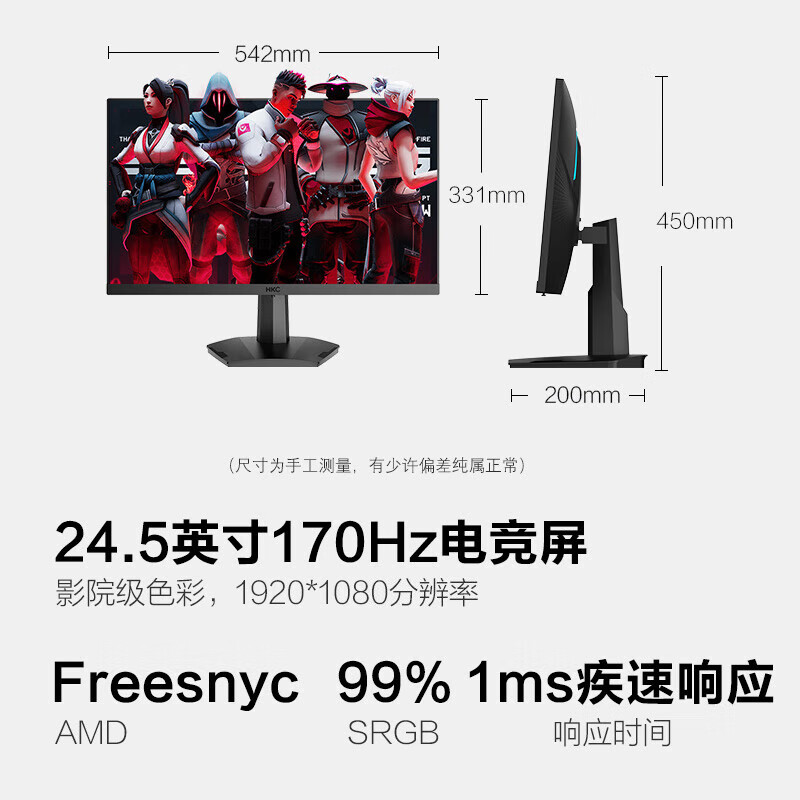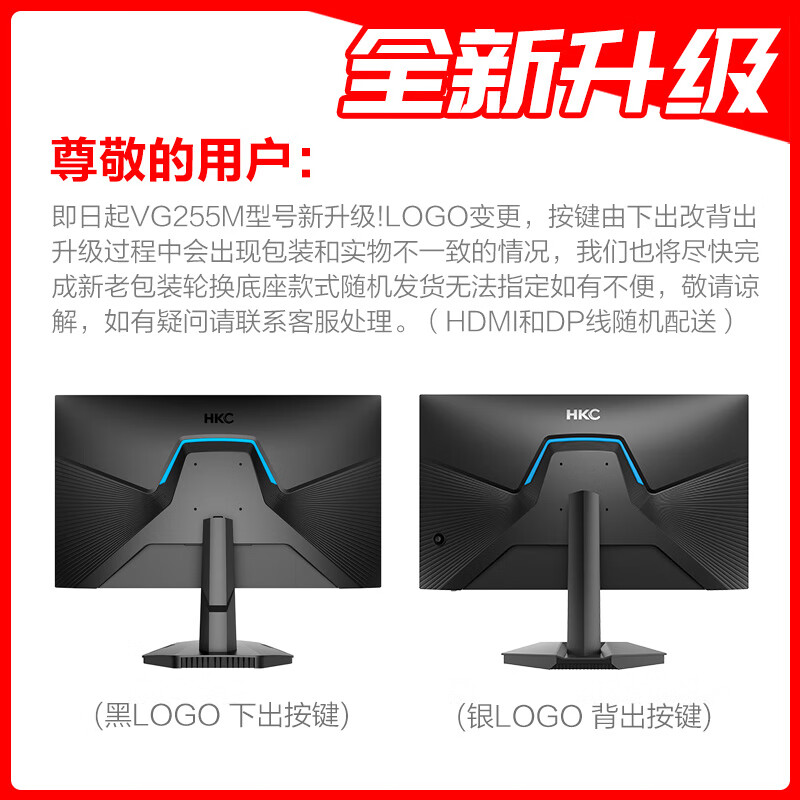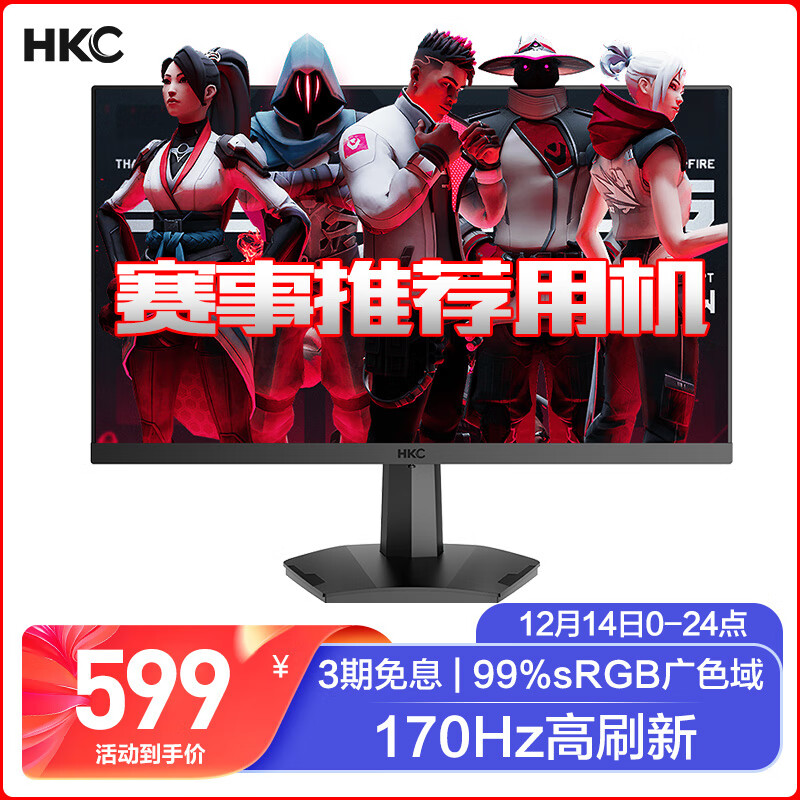 HKC 24.5英寸吃鸡CSGO游戏 170Hz高刷新 1ms响应 三面窄边广色域 可壁挂 144Hz电竞游戏 显示器 VG255M价格:799.00元!