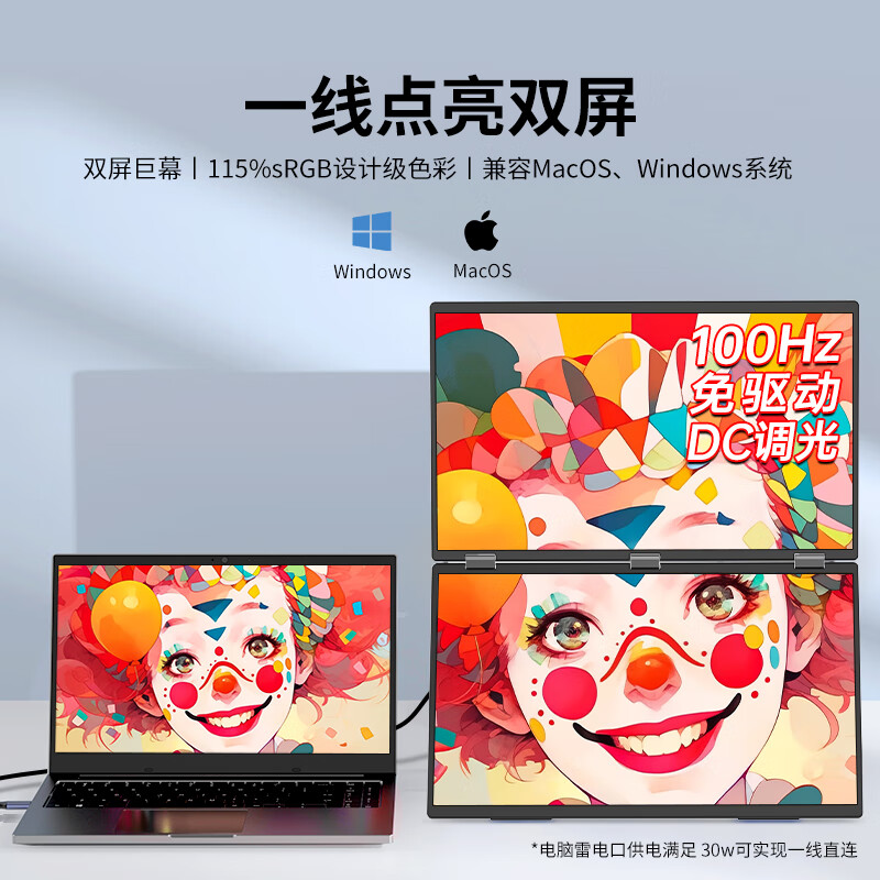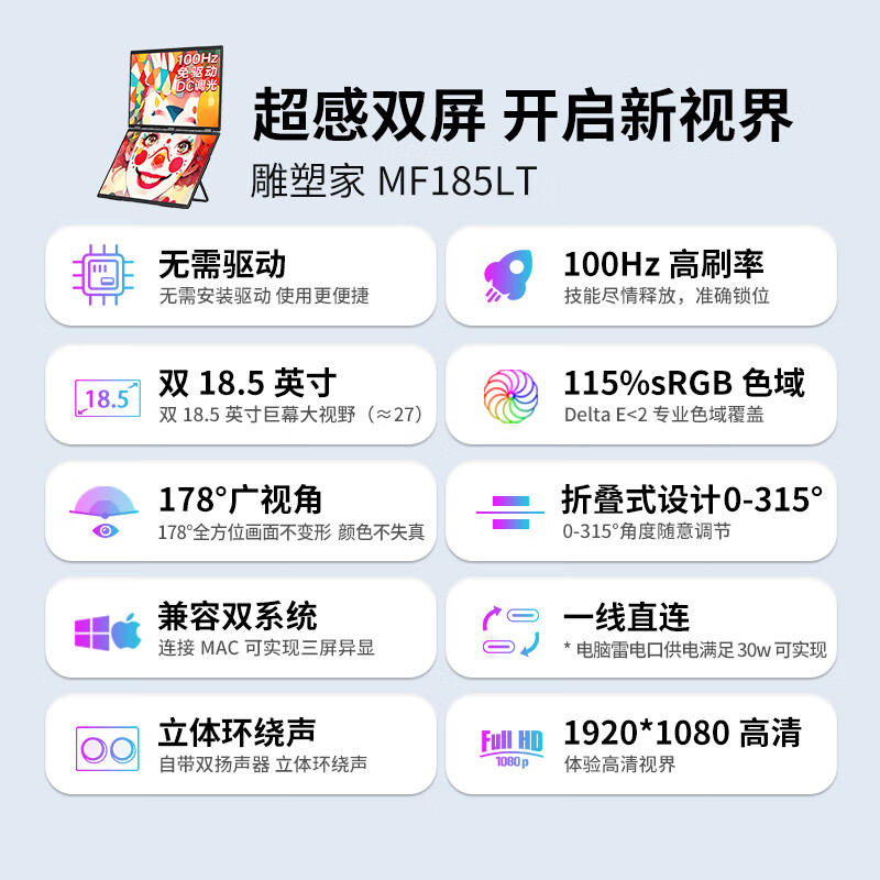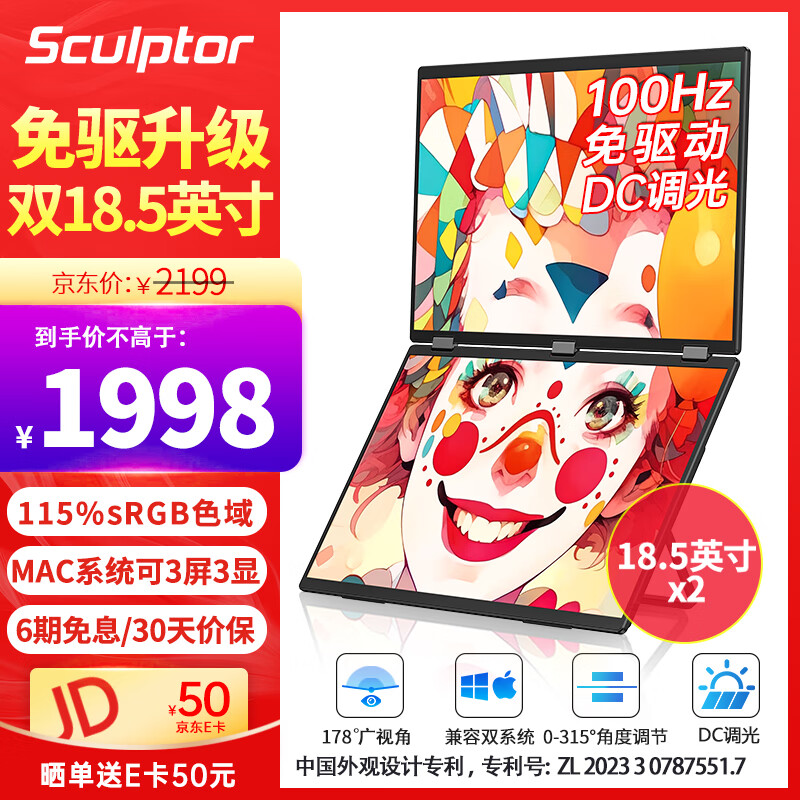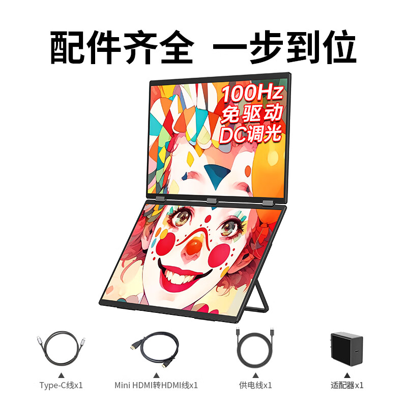 雕塑家双屏便携式显示器 可折叠18.5英寸100HZ 笔记本副屏电脑扩展屏幕办公炒股游戏扩展三屏大屏价格:2199.00元!