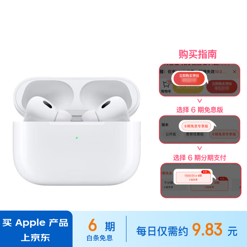 Apple/苹果【6期免息】AirPods Pro (第二代) 搭配MagSafe充电盒 (USB-C)蓝牙耳机 适用iPhone/iPad/Mac价格:1769.00元!