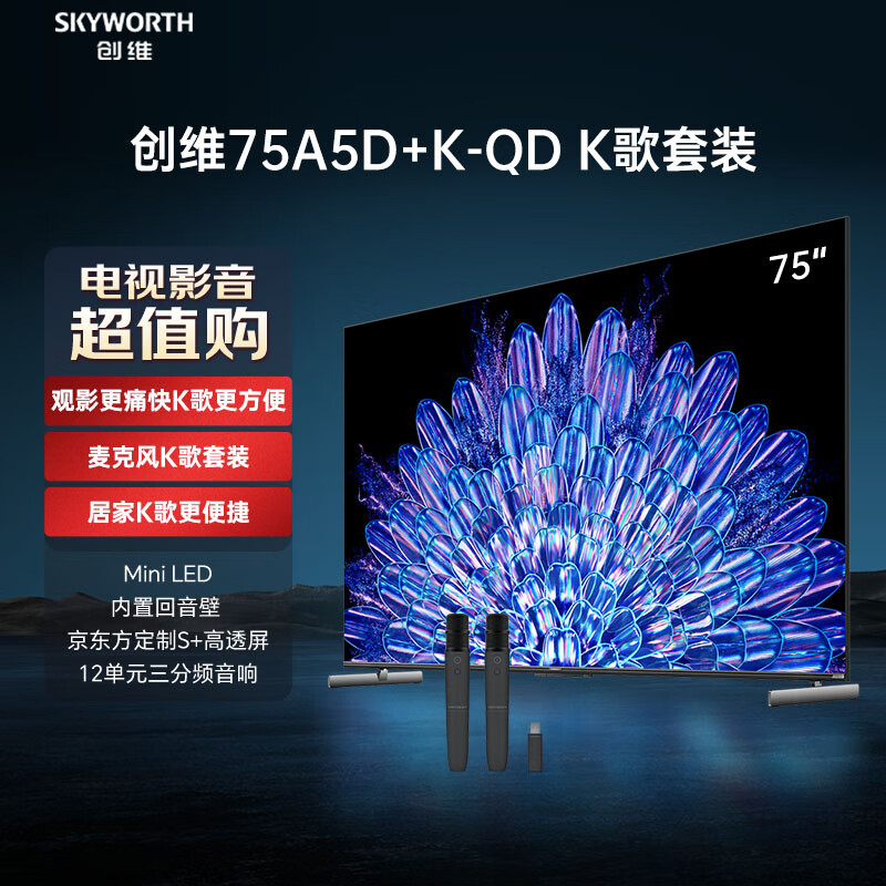 创维电视75A5D Pro+K-QD麦克风套装 75英寸电视机 内置回音壁mini led投屏 K歌影院 双支麦克风价格:5738.00元!