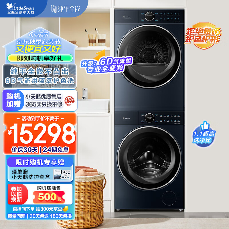 小天鹅(LittleSwan)洗烘套装 10KG滚筒洗衣机全自动+热泵烘干机家用 纯平全嵌 本色蓝氧 全变频 TG100MS97ILZ+97价格:15298.00元!