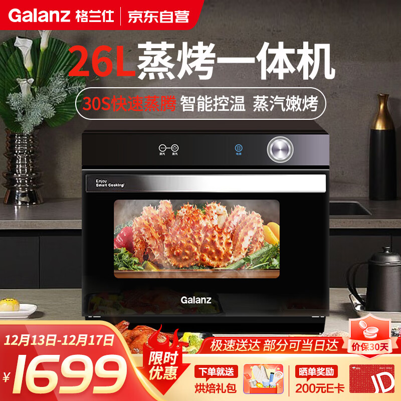格兰仕(Galanz)【蝶翼系列】26L家用大容量 独立控温 下拉门智能控温 烤箱 蒸烤一体 多功能 蒸烤箱 5SG26T-D35价格:1699.00元!