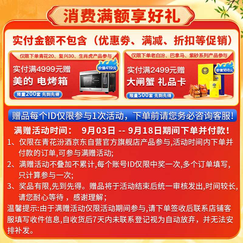 4、这款二十年份的青花瓷汾酒非常的理想!包装精美、外观古朴大气。送礼、聚会大气典雅,酒香四溢、口感纯正、入口留香。价格优惠、快递神速、物有所值!