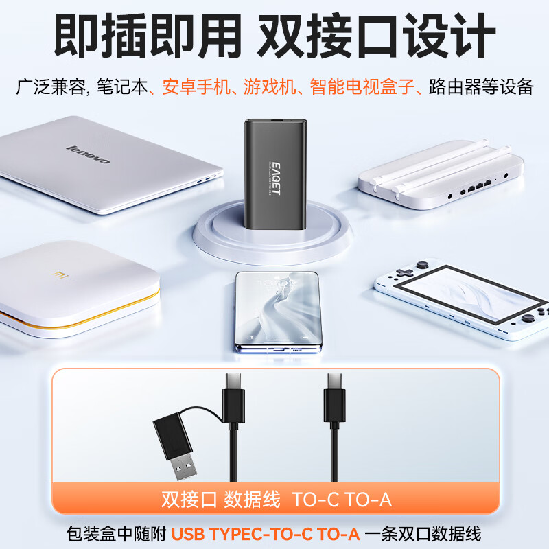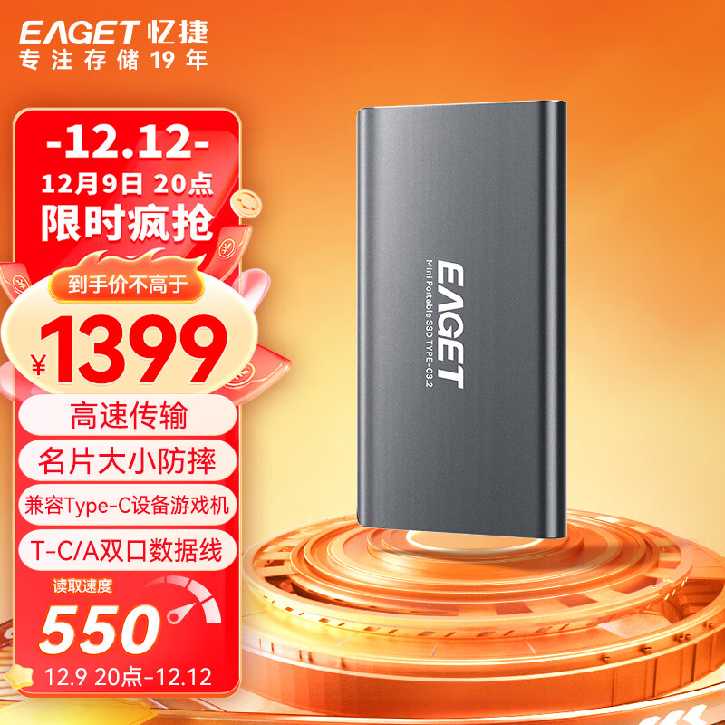 忆捷(EAGET)4TB Type-c USB3.2移动硬盘固态(PSSD)M1 读速高达550MB/s 迷你便携存储笔记本手机电脑价格:1299.00元!